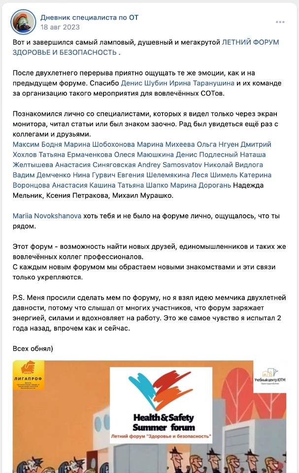 Говорят, что каждые пять лет надо менять что-то в своей жизни, давайте менять Систему управления охраной труда и процессы развития Культуры безопасности к лучшему!