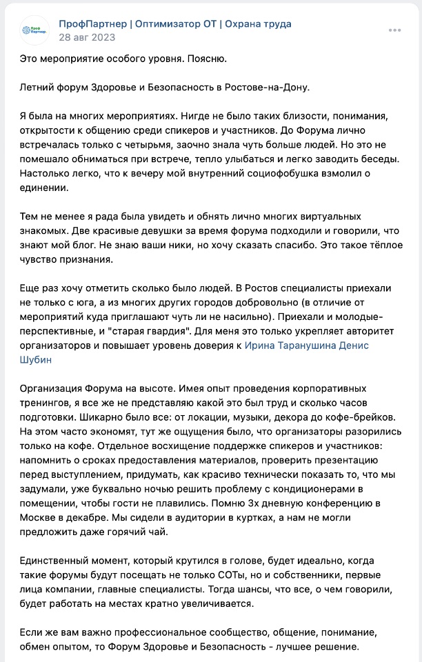 Я, Ирина Таранушина, организатор форума и специалист по охране труда и культуре безопасности на Юге и в Москве!